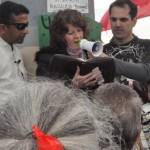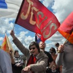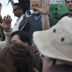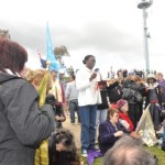 But the amazing thing was, that as the afternoon progressed it was almost as though the protesters were drawn towards the banner. I would say that 90% of those present at some time walked straight towards me and passed through ‘the river of life’. One young lass (one of the ones very much in the forefront of things) literally jumped as though burned when the tip of the banner dipped and touched her.