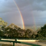 Saturday afternoon we were obviously close enough to Canberra on the Newell Highway to experience the rain and rainbow.