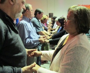 Then 12,  4th generation Australians were called out and also 12 people who have immigrated to Australia from 3rd world countries were also called out. As each person held each other’s hands, the Aussie’s repented on behalf of their forefathers who  colonised many nations and asked forgiveness. This was an amazing moment as many people in the congregation were in tears. Then the 12 people representing the colonised nations responded with much love, accepted the apology and then went on to repent for any resentment they had towards the people of the land.Then hand in hand all in the congregation prayed and made a prophetic declaration that the curse is broken and we will now on rise up as one people united in the name of Jesus and possess this Great South Land of the Holy Spirit. There was much clapping and shouting for joy as this proclamation was made. Glory to God.