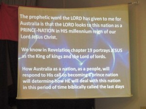 2) All glory to our soon coming King of kings and LORDs, as Prophetic Minister Robert Mist from Millennium Kingdom Ministries based in New Zealand, powerfully ministered God’s prophetic Word and revelation at CTFM Hallam last Sunday morning and evening services, regarding Australia’s end-time prophetic destiny as a ‘Prince Nation’ in our Lord Jesus Christ’s coming Kingdom global government across the Nations of the World!