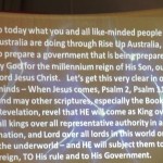 4) Also, for those of you in the Melbourne area, we encourage you to join us our weekly public intercessory prayer meeting this Friday 26th Oct at 7:30pm, open to the wider Body of Christ for National Spiritual Revival, Reformation and Transformation.