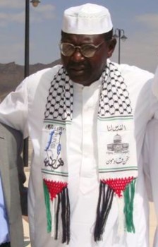 Malik Obama was photographed at an event in Yemen wearing a scarf which  on one side carries the message; “Jerusalem is ours – WE ARE COMING!”