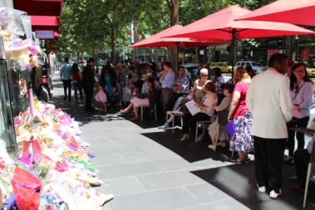 Around 100 people gathered to show their love and compassion to the families of the two victims of the hostage crisis. We also prayed for those who had been held hostage, and the thousands who watched it on TV and were traumatized.