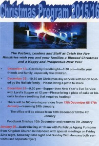 January 26—Australia Day at 10 am with Ps Petrus Agung Purnomo from Kingdom Church in Indonesia with special meetings on Friday 22nd night, Saturday 23rd night and Sunday 24th January both services (see separate flyer)