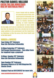 This is a final reminder to please pray and spread the word about Ps Daniel speaking and ministering in Qld on Friday 26th, Saturday 27th & Sunday 28th February 2016.