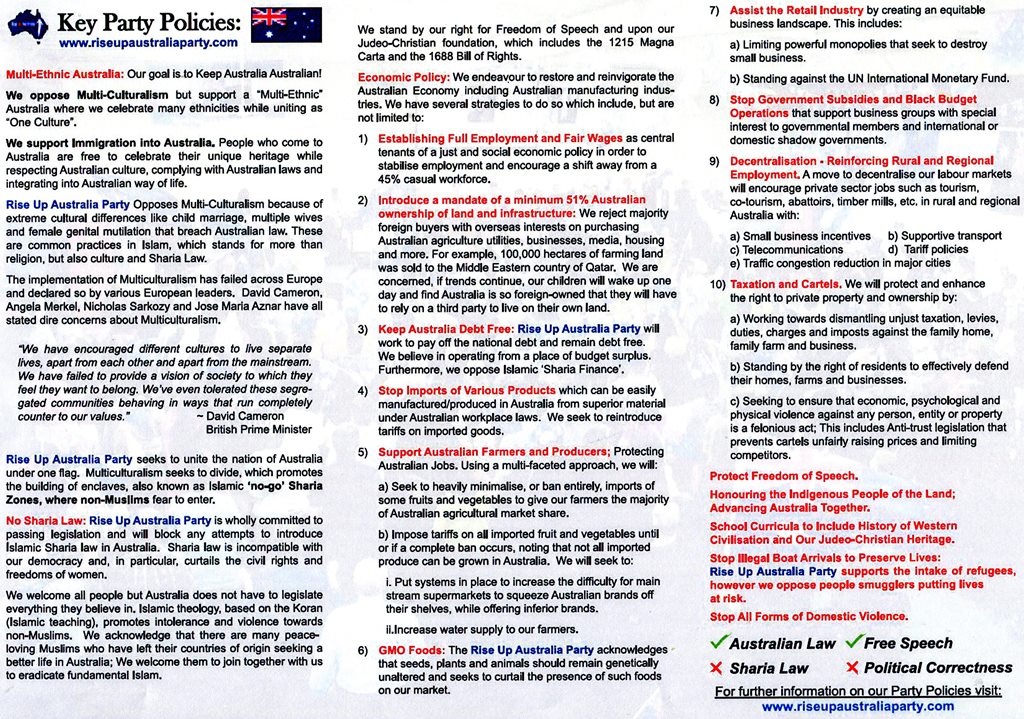 Please forward, print & distribute this Rise Up Australia political party brochure (inside & outside) with your family members, friends, neighbours and others.