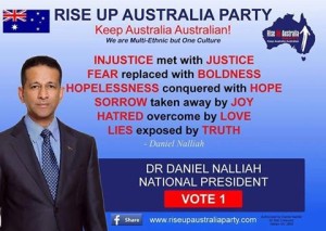 In a time on instability let common sense prevail Post author:Office 2 Post published:July 12, 2016 Post category:Australia / Political Correctness / Politics / Rise Up Australia / Rise Up Australia Party Post comments:0 Comments Rise Up Australia and Keep Australia Great for generations to come! You Might Also Like CAIR POLL: MUSLIMS BACK HILLARY 72% OVER TRUMP 4% January 19, 2017 Andrew Bolt article about the recent Reclaim Australia rallies July 23, 2015 SBS & Sunshine FM Interviews on RUA Party / Pr Daniel’s Speech at VCAT steps / CTFM upcoming schedule June 28, 2011 Leave a Reply Cancel replyCommentEnter your name or username to comment Enter your email address to comment Enter your website URL (optional) Save my name, email, and website in this browser for the next time I comment.